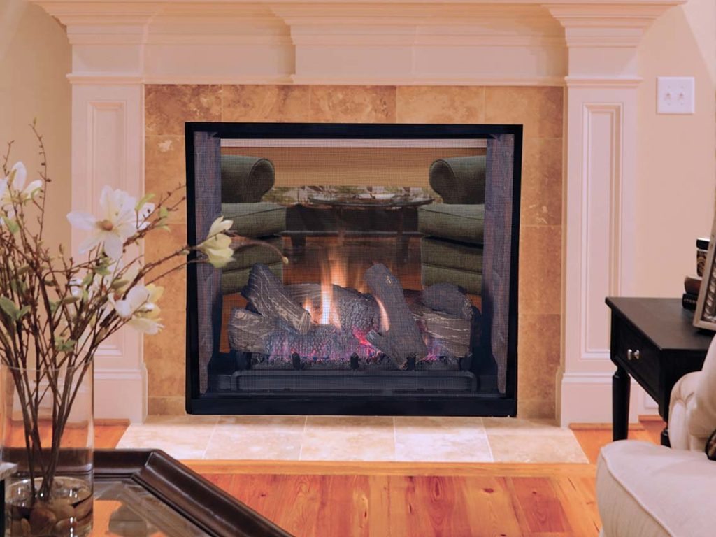 These fireplaces offer a great balance between aesthetics, heating efficiency and installation flexibility. Direct vent fireplaces are designed with sealed glass fronts and are vented using a special two-wall vent system. This sealed system brings all the air used for combustion into the fireplace through the outer vent wall and all the exhaust exits through the inner vent wall. No air loss from the home combined with the heat circulating features of these fireplaces makes them a very efficient source of supplemental heat.
